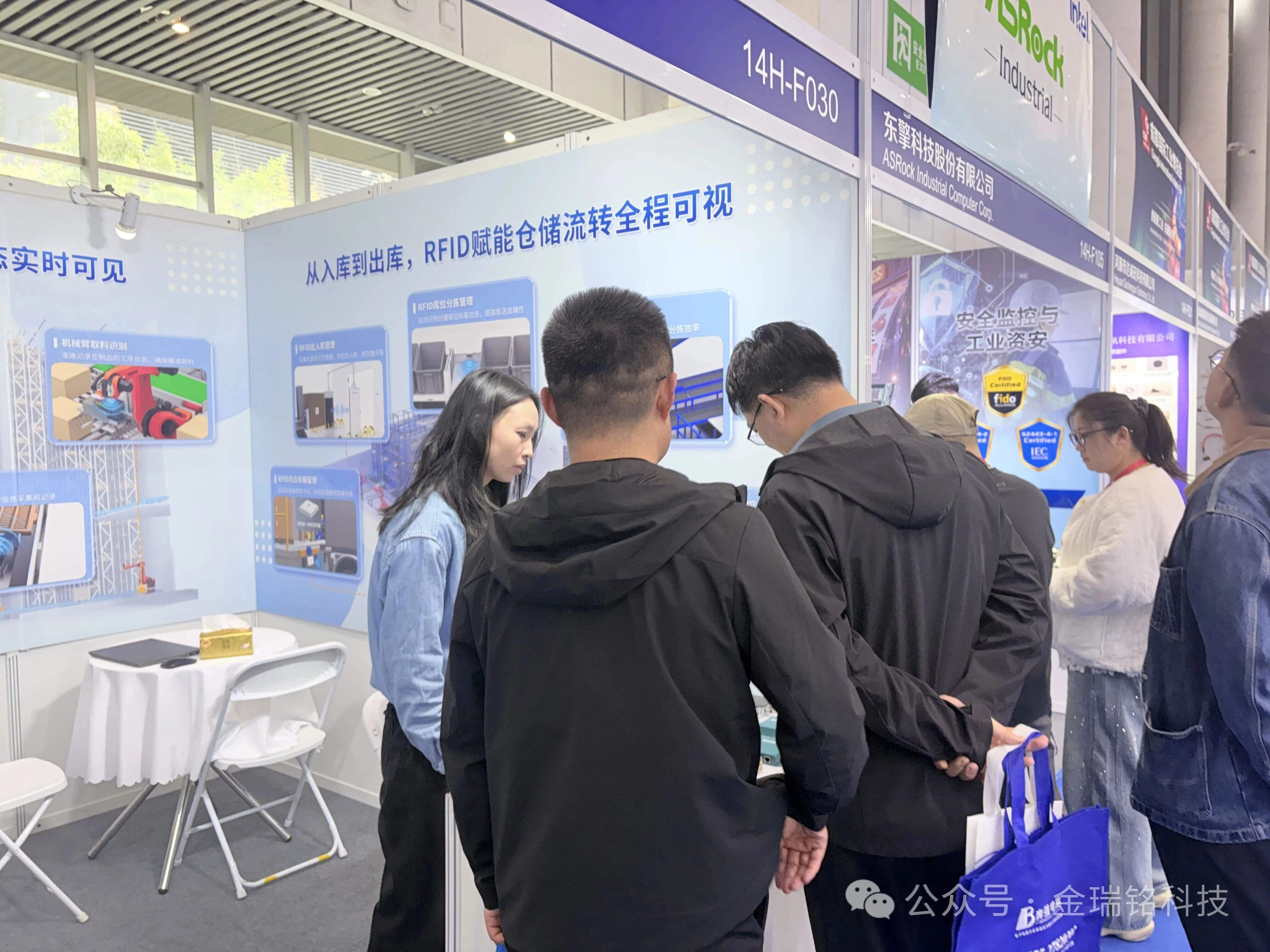 开展首日,金瑞铭展位便迎来了大量专业观众驻足咨询。现场工程师通过设备演示和方案讲解,向观众介绍了RFID技术在工业场景中的实际应用。